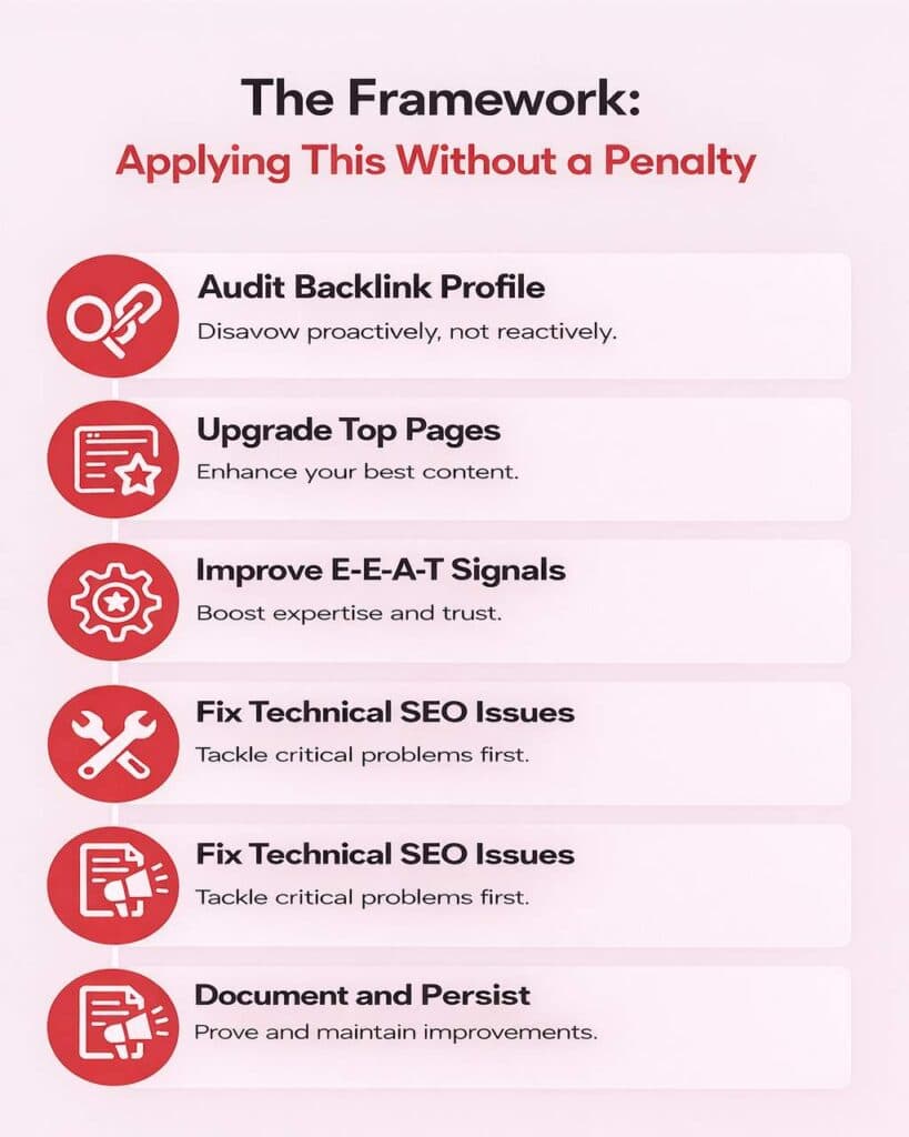 The framework is not penalty-specific. Treat your most important pages as though a quality rater is about to review them, audit your backlink profile as though an enforcement notice just arrived, and document the strength of what you have built. That is proactive quality work. It is also how you make a penalty, should one ever arrive, into an accelerant rather than a setback.