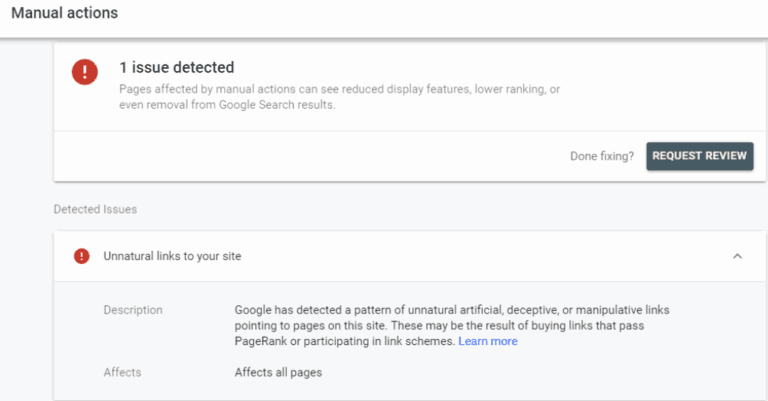 Manual Action: Unnatural Links to Your Site. Some of your pages may not be appearing on Google.